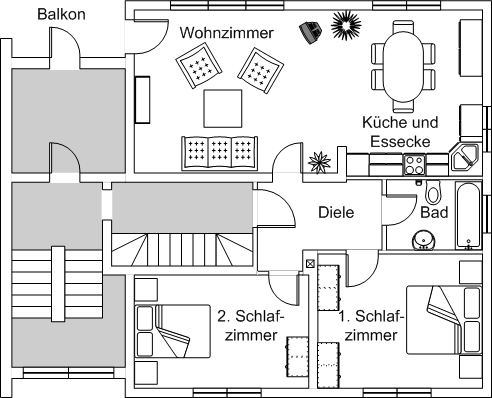 Nichtraucherwohnung im 1. Stock mit 75 m², Kinderbett auf Anfrage, Zustellmöglichkeit weiterer Schlafgelegenheiten,